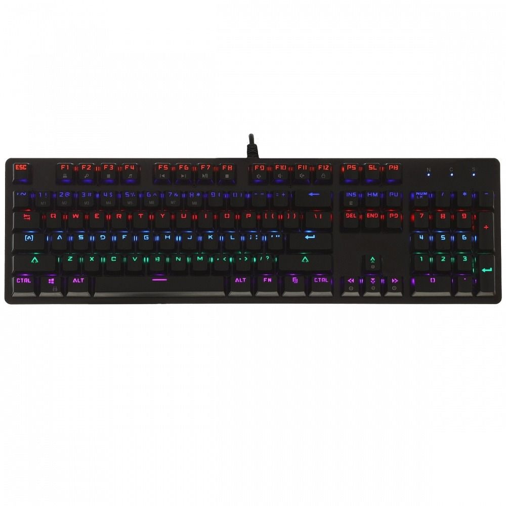 ART KLART AK-51 mechanikus billentyűzet RGB LED háttérvilágítással haladó játékosok számára. 12 multimédiás billentyűvel, teljes méretű elrendezéssel, numerikus blokkkal, fonott USB kábellel rendelkezik. A mechanikus billentyűzetben