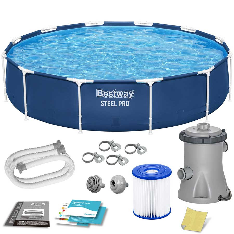 Keretes kerti medence 366 x 76 cm Szett pumpával és szűrővel Bestway 56681 Élvezze a nyarat a saját medencéjében!!! Ha olyan medencére van szüksége, ahol hűsölhet a forró napokon - ez a tökéletes választás az Ön számára! Hívja meg barátait és családját egy medencepartira, és élvezze együtt a nyár varázsát. Ha Bestway úszómedencét vásárol, biztos lehet benne, hogy a legjobb minőséget fogja kapni. A készlet tartalma: Keretes medence 366 x 76 cm Szűrőszivattyú I-es típusú szivattyúszűrő Szivattyúszűrők Szivattyú bilincsek Szivattyútömlők Javítsa ki a javítást Lengyel nyelvű utasítások Útmutató – letölthető az aukción A legmagasabb minőségi kidolgozás Tartós 3 rétegű PVC anyag Nylon hálós megerősítés a rétegek között Szúrásálló bevonat Belseje fehér A medence 3 gyors lépésben készen áll: Bontsa ki a héjat, Szerelje össze a keretet - szerszám nélkül Öntsön vizet - kész! Most egy ilyen nagy medence felállítása eltart néhány pillanatig Műszaki adatok: Medence: Méretek: 366 x 76 cm Medence súlya: 22,6 kg Javasolt víztöltés 90% Űrtartalma 6473 liter Szivattyú: Szivattyúteljesítmény: 1249 liter/óra. Tápfeszültség: 220 - 240 V Szűrő típusa: I. típus Szivattyúszám: 58381 ️️️ Legyen csodálatos élményekkel ez a nyár! ️️️