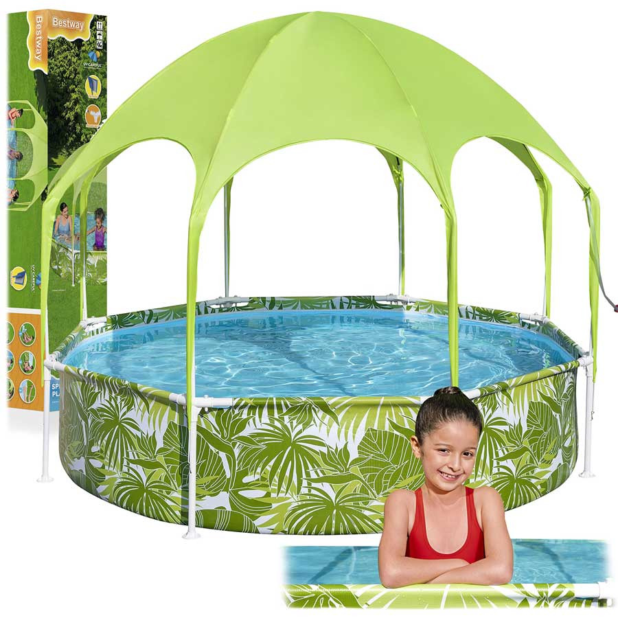 Basen ogrodowy z daszkiem Bestway — to basen ogrodowy wykonany z mocnego materiału winylowego, który rozpręża się podczas napełniania wodą.