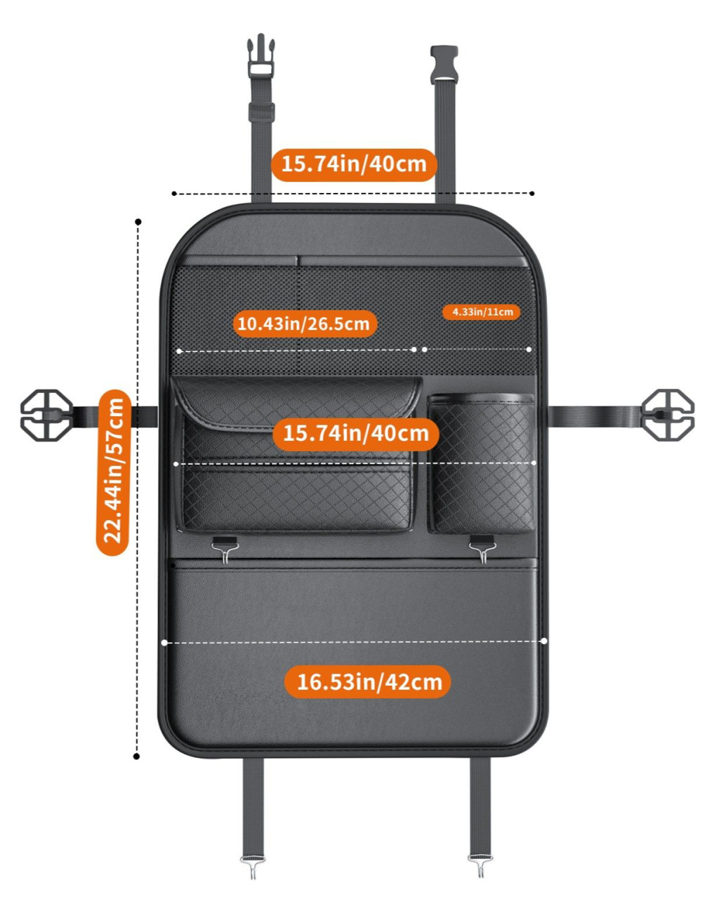 • Könnyű összeszerelés: A rendszerező gyorsan és egyszerűen rögzíthető az első ülésekre, így kényelmes megoldást jelent a mindennapi használatra.
