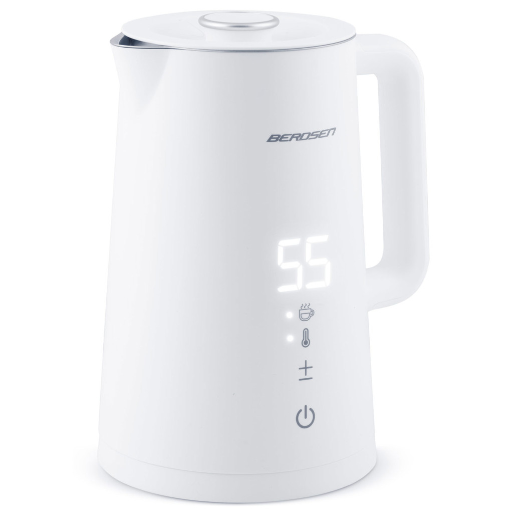 Érintős elektromos vízforraló hőmérséklet-beállításokkal Berdsen: BD-709 Modern, funkcionális, ergonomikus vízforraló a legmagasabb minőségben. Érintős vezérlőpanel aktuális hőmérséklet kijelzővel. Hőmérséklet fenntartása funkció akár 2 órán keresztül. Kiváló minőségű SUS 304 rozsdamentes acél. Szigetelt, hideg tapintású CoolTouch™ ház. Lehetőség a fűtési hőmérséklet beállítására 5 intervallumban. Paraméterek: ergonomikus, levehető fedél, csúszásmentes lábak, vezeték tárolása, kábel hossza: 0,75 m, 360°-ban forgatható alap, CE és ROHS tanúsítvánnyal rendelkezik fogantyúja nem melegszik fel. Könnyű és praktikus – tökéletesen megtervezett! Puha érintésű érintőpanel A vízforraló házán egy nagy érintőpanel található funkciógombokkal: Forrásban lévő víz főzése. A hőmérséklet fenntartása (legfeljebb 2 óra). Fűtési mód megváltoztatása Be- és kikapcsolás. Hőmérséklet mérő! A hőmérsékletjelzőnek köszönhetően könnyedén elkészíthet bármilyen italt! A fűtési hőmérsékletet a következő tartományokban állíthatja be: 40 ℃ - tej és italok gyerekeknek. 55 ℃ - víz citrommal és mézzel. 80 ℃ - yerba mate, zöld tea. 90 ℃ - Darjeeling tea, oolong, kávé alternatív főzési módszerekkel. 100 ℃ - főzéshez. Gőzölgő ételek. Hideg tapintású ház, amely nem melegszik fel: A kétrétegű CoolTouch™ háztechnológiának köszönhetően, amely egy rozsdamentes acél rétegből és egy jó minőségű műanyag rétegből áll, a vízforraló kívülről nem melegszik fel. Biztonságos használat: kerülje az égési sérüléseket a vízforraló megérintésekor. Könnyű használat: a vízforraló biztonságosan hordozható. Energiatakarékosság: jobb szigetelés, kisebb hőveszteség. Levehető fedél és fém ház A Berdsen vízforralók gyönyörű dizájnnal és kiváló minőségű kidolgozással rendelkeznek. Válassz fém tokot – vigyázz egészségedre! Válasszon egy BPA-tól (Biszfenol A) mentes elektromos vízforralót: A Berdsen vízforralók gyönyörű dizájnnal és kiváló minőségű kidolgozással rendelkeznek. A SUS 304 rozsdamentes acél belső garanciák: Jobb vízminőség: tisztább, szennyeződésmentes víz. Hosszabb élettartam: a vízforraló nagyobb tartóssága és tartóssága. Környezetbarát választás: környezetbarát anyagok és újrahasznosítás. Forgó alap! A jobb- és balkezesek számára egyaránt tervezett vízforraló bármilyen pozícióban elhelyezhető. Az alap csúszásmentes lábakkal rendelkezik. Egy hely a felesleges kábelek feltekerésére. Egyszerű, kényelmes és intuitív kezelés! Tökéletes befejezés! Specifikáció: Kétrétegű ház: rozsdamentes acél, műanyag Vízforraló belseje: SUS 304 rozsdamentes acél Feszültség és frekvencia 220-240 V 50/60 Hz Teljesítmény 1850-2200 W Űrtartalom 1,7 l Száraz főzés elleni védelem Háttérvilágítású kijelző érintőpanellel Levehető fedél 360°-ban forgatható talp Ház szélessége kifolyóval és kapcsolóval: 21,5 cm Ház szélessége: 16 cm Magasság: 24,5 cm Fehér ház – minden konyhába ajánlott Elegáns konyhai elem! Tökéletes ajándék ötlet! A vízforraló elegáns kartondobozba van csomagolva, így stílusos ajándék lehet.
