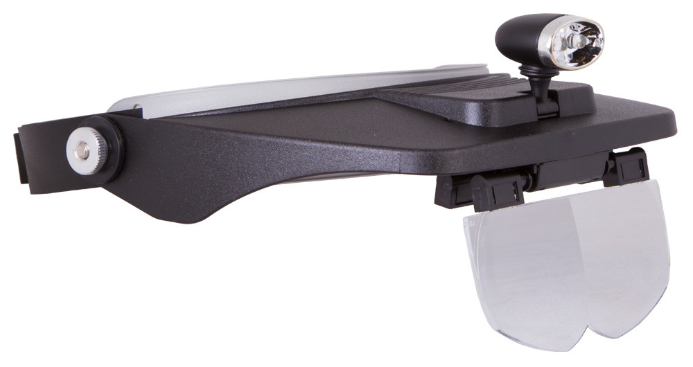 A Levenhuk Zeno Vizor H3 fejre szerelhető nagyító egy speciális, rugalmas hurokkal könnyedén a fejre rögzíthető. Ezáltal mindkét kéz szabadon marad munkavégzés közben. A LED-izzók egyenletesen világítják meg a munkaterületet. Az izzók elemmel működnek, amelyet a vásárlónak külön kell beszereznie.