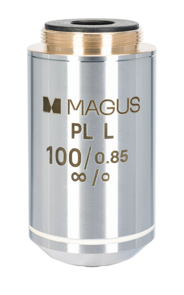 A 100x nagyítású sík objektívet metallográfiai mikroszkóppal való használatra tervezték. 0,40 mm-es nagy munkatávolsággal rendelkezik, és kifejezetten domború mintákon is dolgozhat vele anélkül, hogy a lencse megkarcolódna vagy a minta megsérülne.
