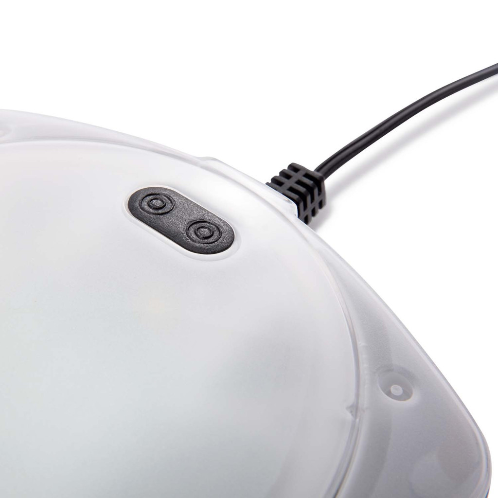 Mágneses többszínű LED medencelámpa Modell: INTEX 28698 A bemutatott medencelámpa az Intex egyik legújabb ajánlata. Mágneses tulajdonságait felhasználva biztonságos feszültségátvitelre képes. A medence falain keresztül áramlik a benne lévő LED-lámpákhoz. Érdemes megjegyezni, hogy ez a lámpa több fényt képes adni, mint egy klasszikus 50 wattos izzó, és így akár 7,32 méteres távolságból is megvilágítja a medencét. A lámpába szerelt LED diódák többféle színben (zöld, kékeszöld, kék és lila) világíthatnak, a különböző világítási módok pedig egyenletes váltást tesznek lehetővé az egyes színek között. A LED-es világítás egyik legfontosabb előnye a sokoldalúság. A tartály tulajdonosa szabadon rögzítheti őket a medence bármely oldalához, és szükség esetén szabályozhatja a helyzetét. Ha a lámpa belső része leválik az áramforrásról, felúszik a felületre, így könnyebben összeszerelhető a készülék. Főbb jellemzők: LED lámpa négy szín (zöld, kékeszöld, kék és lila) könnyű összeszerelés mágneses rögzítés a lámpa belső része lekapcsolt állapotban lebeg a vízben kis súly Műszaki adatok: tápellátás: 220-240V áramforrás: elektromos áram fényforrás: LED világítási tartomány akár 7,32 m súlya: 1,6 kg