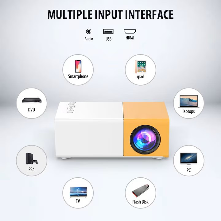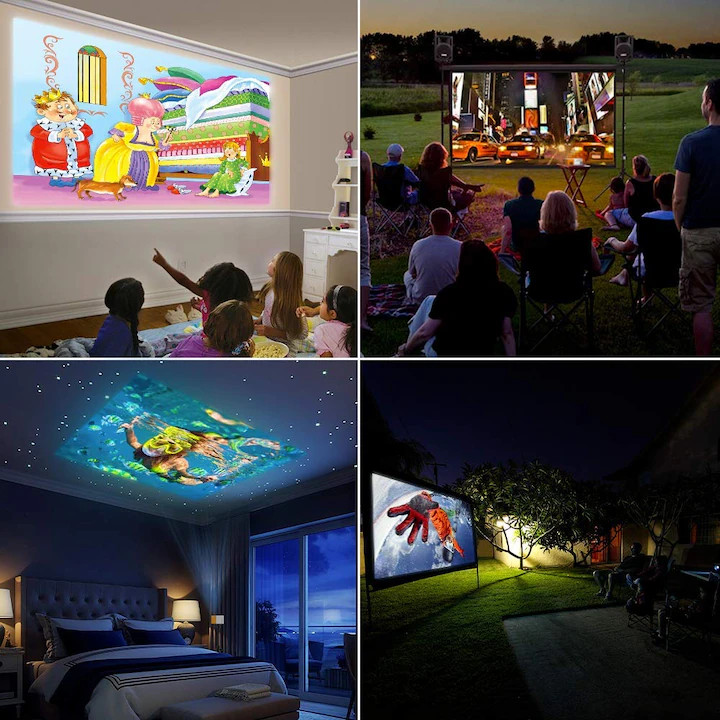 A mini projektor fejlett hűtőrendszerrel rendelkezik, amely észrevehetetlen zajt kelt, így családi és irodai környezetben egyaránt tökéletes. A klasszikus videoprojektorokat nehéz használni és hordozni útközben, de kis méretének köszönhetően a mini videovetítőt könnyedén magával viheti utazásai során, és akár 80 hüvelykes képernyőhöz is illeszthető. Ha Ön tanár , könnyedén használhatja az órákon, hogy élénkítse a légkört és felhívja magára a diákok figyelmét. Ideális ajándék gyerekeknek is, rajzfilmek és videók nézéséhez, így távol tartva őket a táblagép vagy a telefon képernyőjétől.