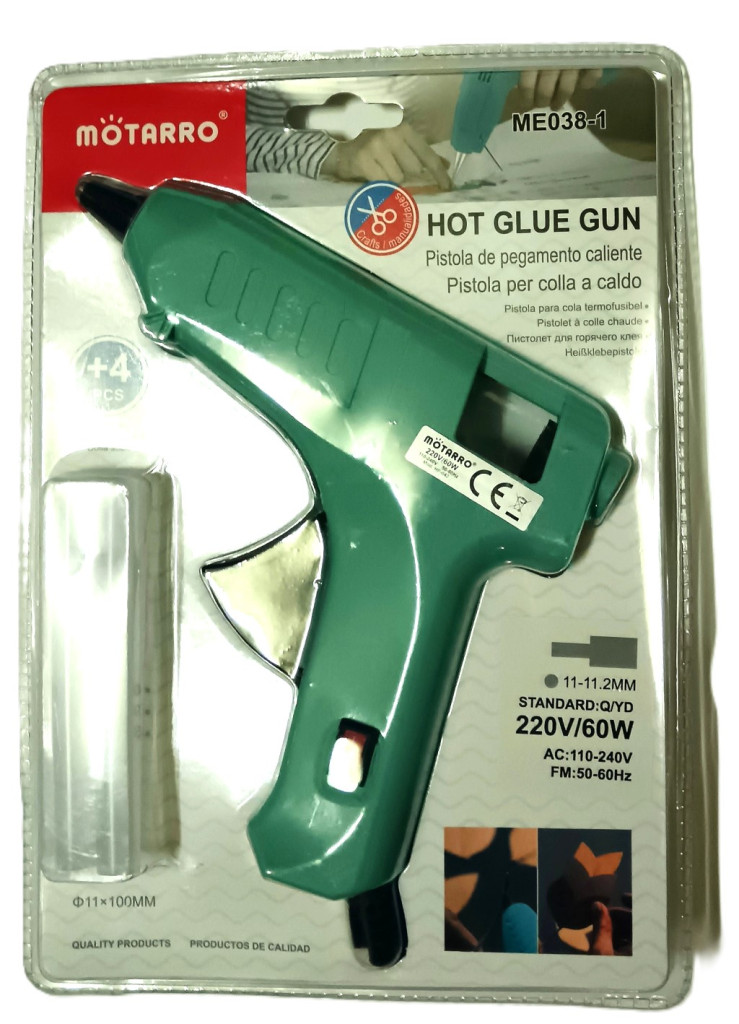 Ez egy Motarro ME0381 forró ragasztópisztoly, amely kézműves munkákhoz és kisebb javításokhoz használható.