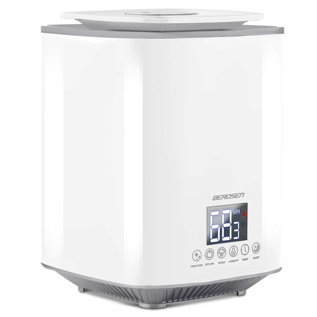 Berdsen Premium légnedvesítő Modern légnedvesítő ionizációs és aromatizáló funkcióval - magas, akár 250 ml/h párásító kapacitással! Főbb jellemzők: párásítás, ionizáció, aromaterápia, köd, nagy víztartály - 2,6 l, higrosztát a 45-90% tartományban beépített higrométer - a párásító szabályozza a környezet páratartalmát, modern dizájn, nagy hatásfok akár 9 óra üzemidő egy tartályon, automatikus kikapcsolás, ha a víztartály üres, beépített időzítő (1-9 óra működési tartományban), érintőképernyős vezérlőpanel, vízszűrő - vízkőmentesítés (beépített). Egészséges levegő körülötted Gyakran nem figyelünk a környezetünk páratartalmára, de különösen a fűtési szezonban a túl száraz levegő kellemetlen érzést és rossz közérzetet okozhat - a nyálkahártya kiszáradása, a baktériumok és vírusok terjedése (allergia és fertőzés), a hám kiszáradása (bőrproblémák). A Berdsen párásítóval: jobban fogsz aludni magadnak és családodnak, megerősíted az arcbőrödet, javítja általános közérzetét, sok fertőzést és allergiát elkerülhet, javítani fog a növényei állapotán. Intelligens párásítás Nincs túlzott vízgőz, nincs túlzott energiafogyasztás Beépített higrosztát Beállíthatja az elérni kívánt páratartalmat, 45% és 90% között. A párásító mindaddig tovább működik, amíg el nem éri a beállított páratartalmat a környezetben. Beépített higrométer A beállított páratartalom elérése után a párásító készenléti üzemmódba kapcsol, ezzel egyidejűleg folyamatosan ellenőrzi a levegő páratartalmát. Ha a páratartalom a várt érték alá csökken, a párásító automatikusan újraindul. Aromaterápia – egészség és kikapcsolódás egyben merüljön el a frissítő illatjegyekben. A párásító lehetővé teszi illatolaj felvitelét, amelynek illata megmarad a párásító működése közben. Öntsön 2-3 cseppet a víztartályba. Levegő ionizáció - lélegezzen mélyen Az ionizáció lehetővé teszi a vírusokat, baktériumokat és port hordozó pozitív ionok semlegesítését Az ionizált levegő egészségesebb az emberi szervezet számára és enyhülést hoz, különösen légúti megbetegedések esetén. Éjszakai üzemmód - a jó alvásért Egy gombbal a párásítót alvó üzemmódba kapcsoljuk, ami kikapcsolja a kijelzőt és diszkréten folytatja a párásítást. Aludjon nyugodtan, és hagyja, hogy a párásító elvégezze a dolgát. Intuitív LED érintőpanel Ionizáció A párásító be/kikapcsolása A párásítás sebességének/intenzitásának beállítása (3 üzemmód)/éjszakai üzemmódra váltás A páratartalom beállítása, amelyre a párásítónak törekednie kell (45-90%) Időzítő – időzített leállítási beállítás Alvó mód, alvó üzemmódban az információs panel lehet aktív vagy halvány 3 az 1-ben párásító - három párásítási mód szabadon válassza ki a párásítási intenzitást 45-90% tartományban. Műszaki adatok: típus: ultrahangos levegő ionizációs funkció aromaterápiás funkció hideg köd nagy hatásfok: 250 ml/h automatikus kikapcsolás LED érintőpanel beépített higrosztát és higrométer nagy víztartály: 2,6 l vízkőoldó szűrő (mafan stone) alacsony zajszint tápellátás: hálózati 220-240 V, kábel hossza: 1,25 m. A készlet tartalmaz egy távirányítót (elem tartozék). Figyelem! A vizet a használati utasításban megadott megfelelő helyre kell önteni.