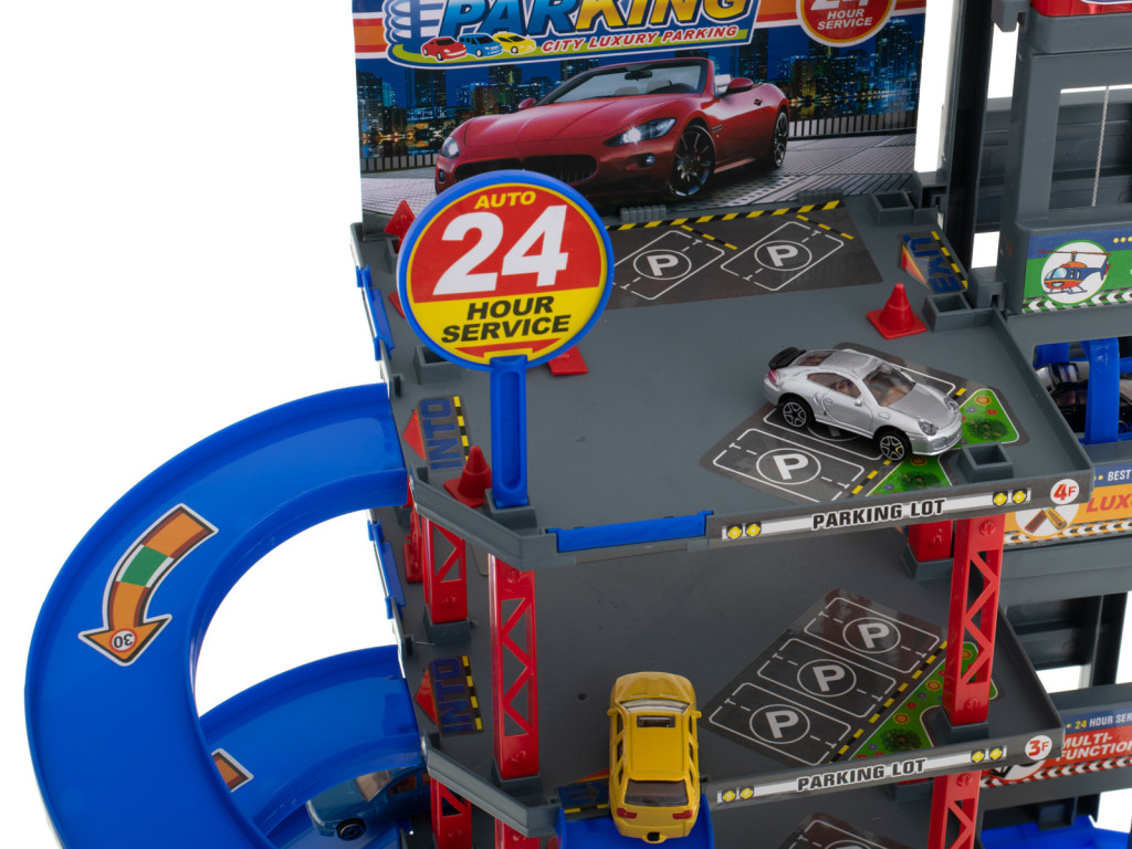 A sok funkcióval rendelkező garázs minden kis autórajongó számára élményt jelent.