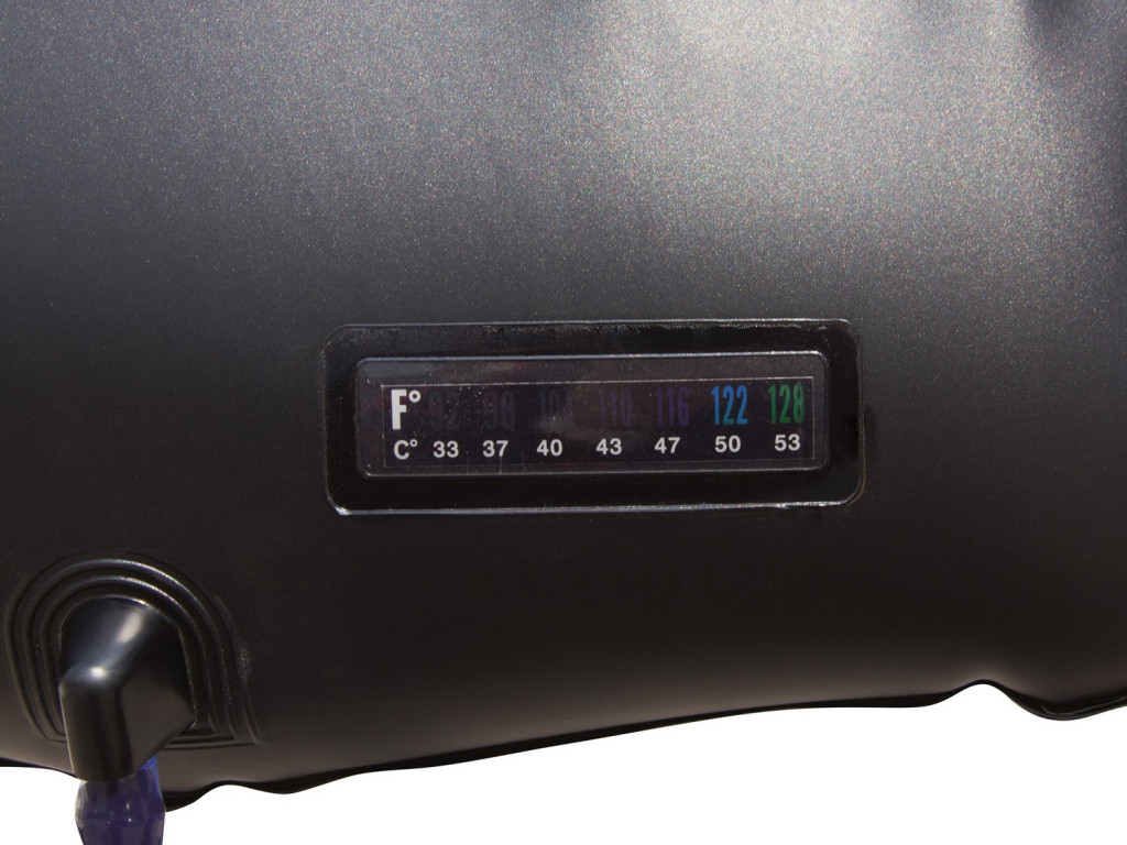 Prysznic ten pomieści 20 litrów wody, która dzięki promieniom słonecznym oraz czarnemu materiałowi, z którego został on wykonany, zostanie szybko podgrzana, nawet do temperatury 40°C.