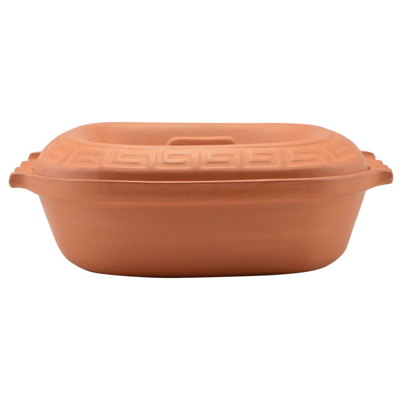Használata: az edényt első alkalommal 30 percig, további sütések alkalmával 15-60 percig hideg vízben áztassa. Az edényt mindig hideg sütőbe, rácsra tegye, és fokozatosan melegítse a kívánt sütési hőmérsékletre. A forró edényt ne hűtse hirtelen, fa deszkára, hőálló alátétre vagy száraz ruhára helyezze!