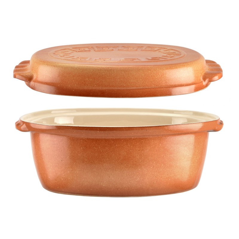 Használata: az edényt első alkalommal 30 percig, további sütések alkalmával 15-60 percig hideg vízben áztassa. Az edényt mindig hideg sütőbe, rácsra tegye, és fokozatosan melegítse a kívánt sütési hőmérsékletre. A forró edényt ne hűtse hirtelen, fa deszkára, hőálló alátétre vagy száraz ruhára helyezze!