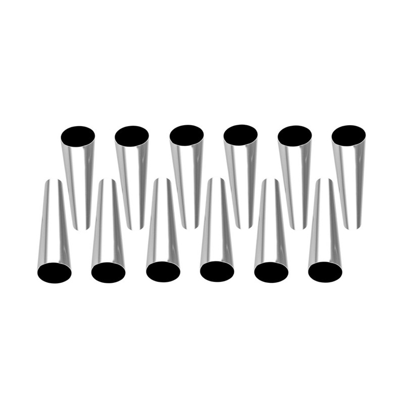Használata: A leveles tésztát vékonyra nyújtjuk, 1 cm-es csíkokat vágunk és a mini tekercsre felcsavarjuk úgy, hogy a csíkok szélei fedjék egymást. Úgy helyezzük a sütőlemezre, hogy a végek alulra kerüljenek. Forró sütőben, erős lángon pirosra sütjük. Még melegen lehúzzuk a formákat úgy, hogy tenyerünkkel átfogjuk a tekercset és másik kezünkkel a formát megcsavarva a tésztából kihúzzuk. A tekercset kihűtjük, és sajtos besamellel / tejszínes sonkával / darálthúsos töltelékkel / pudinggal / tejszínhabbal megtöltjük.