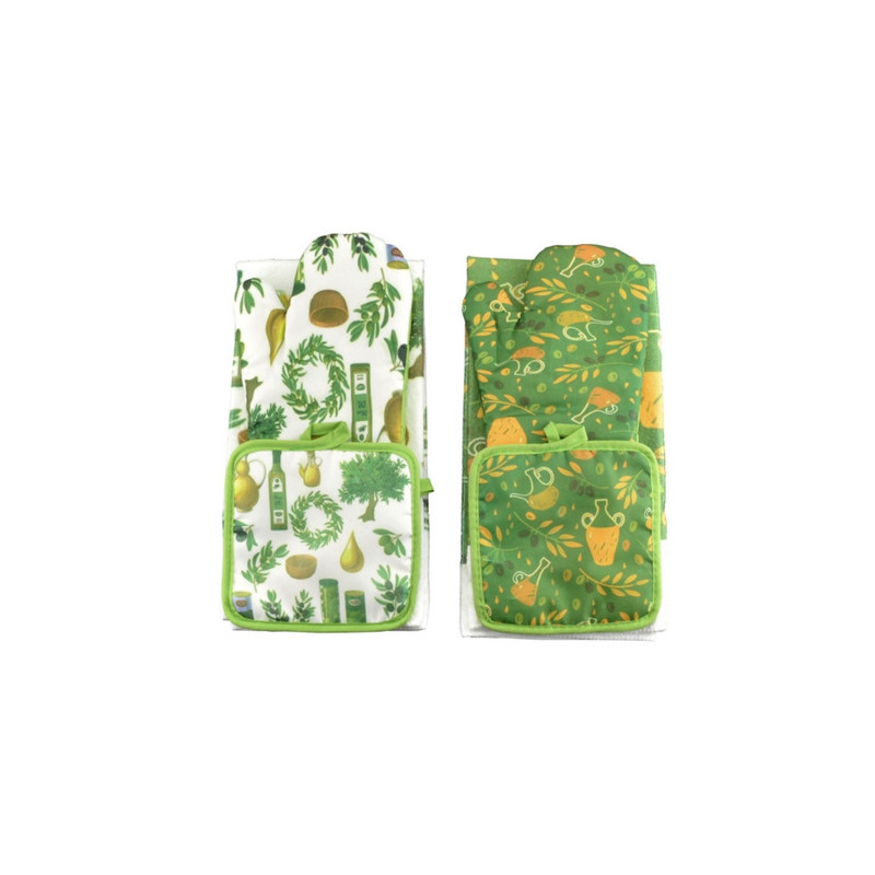 Tartalma: 1 db konyharuha, 1 db sütőkesztyű, 1 db edényalátét