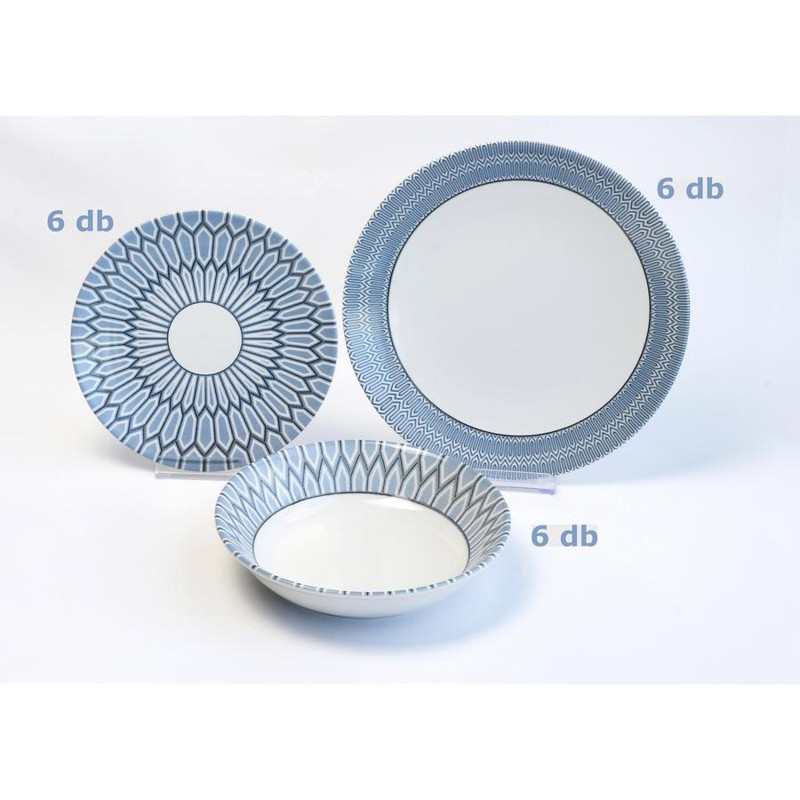 Tartalma: 6 db lapos tányér; 6 db desszertes tányér; 6 db mély leveses tányér