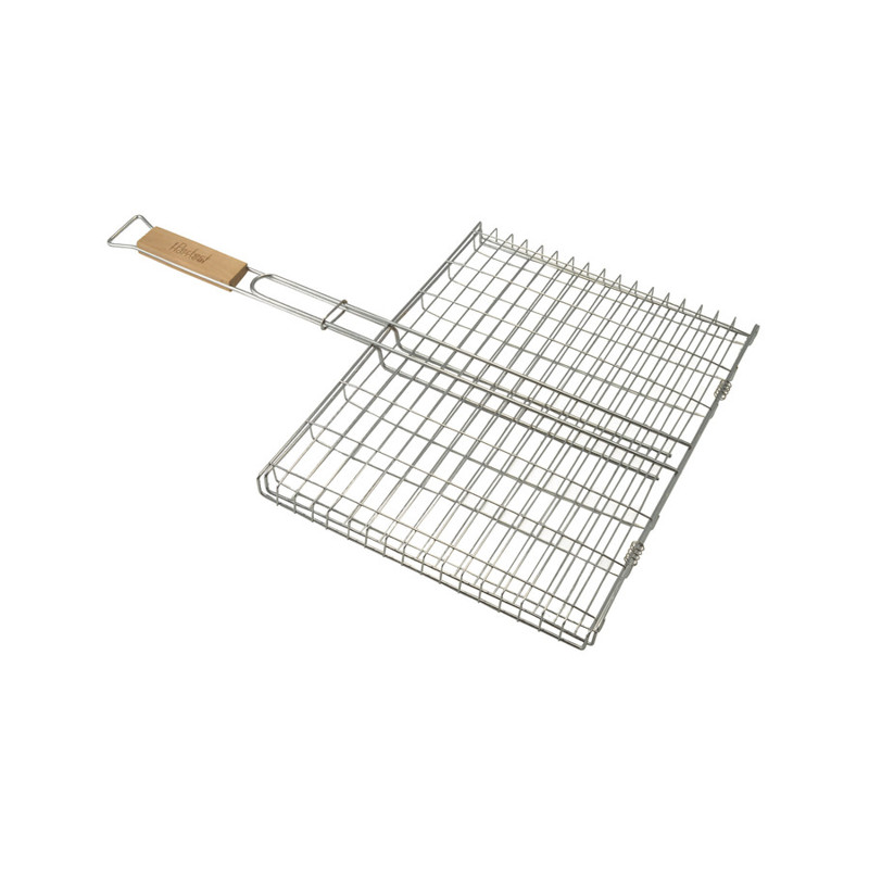 Használata: Nyissa szét a grillrácsot, helyezze bele a grillezni kívánt halat, húst vagy zöldséget, majd csukja össze. A nyél sütés közben felmelegedhet, így sütőkesztyű használata ajánlott!