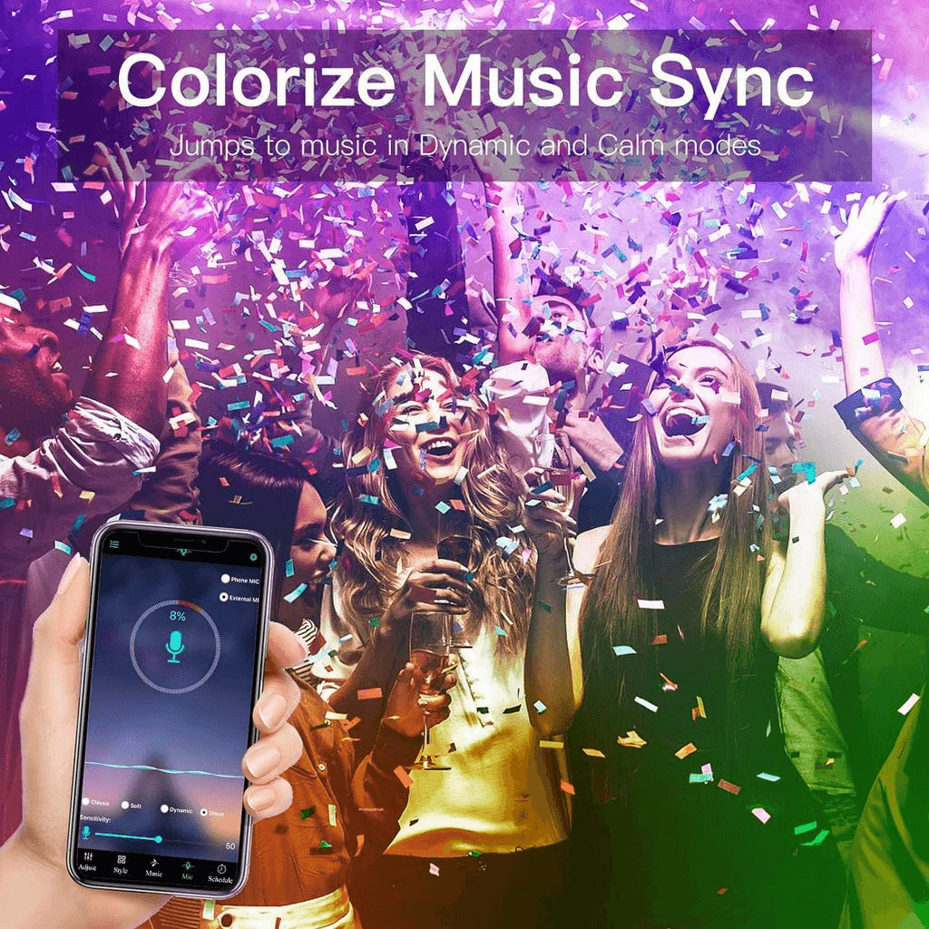 A szalag vezérelhető távirányítóval, okostelefon alkalmazással vagy hangasszisztenssel.