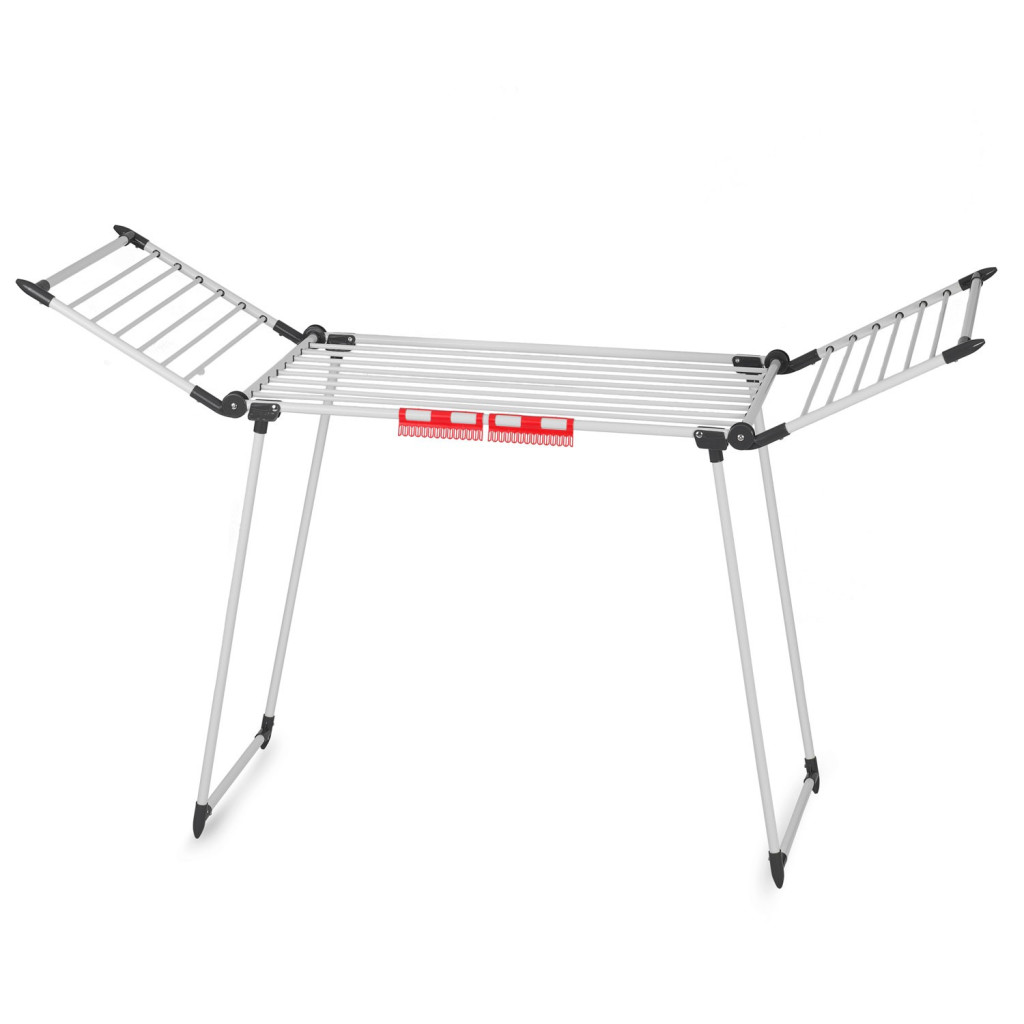 Mosoda szárítógép nagy szárítóterület - 19 m, 2 összecsukható szárny, fehérneműtartók, csúszásmentes lábak, gyors össze- és kihajtás. Praktikus megoldások tartók fehérnemű szárításához - ha a fehérneműt az erre a célra tervezett további fogantyúkra akasztja, helyet takarít meg a szárítón, összecsukható/összecsukható karok, csúszásmentes lábak. Egy, kettő – és ennyi! A Massido ruhaszárítóban a rudakat olyan távolságra helyeztük el egymástól, hogy a ruha szabadon elpárologhasson és száradjon. A sorok közötti megfelelő távolságnak köszönhetően a víz gyorsan elpárolog, a ruhanemű pedig egyenletesen szárad és készen áll a hajtogatásra!