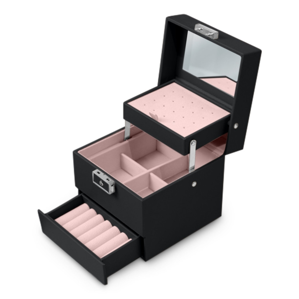 Ékszerdoboz Kényelmes és funkcionális: zárt, könnyű, kézre álló (könnyű tárolás), hordozó fogantyú, zár funkció véletlen kinyitás ellen. Stílusos: gyönyörű szín és modern forma, felnőtt nőknek és tinédzsereknek egyaránt tökéletes, gondosan kidolgozott. Prémium minőség: masszív anyagokból, nagy tartósság, kopásálló, PU anyag, eco-bőr, minden részletében kifinomult. Rendkívül tágas, szép és stílusos! MAGAS ÉRTÉKELÉS Ez a doboz a lányok álmainak és a nők igényeinek egyaránt megfelel. Elég tágas ahhoz, hogy a lányok első kincsesládájává váljon, ugyanakkor olyan elegáns, mint egy felnőtt nő ékszerkollekciója. Stílus és kidolgozás, amely meghaladja a lengyel piacon elérhető ilyen típusú termékek színvonalát. Ékszerdobozunk sokféle ízlésnek megfelel, és minden hölgy számára hasznos lesz, életkora megkérdezése nélkül. A tágas ékszerdoboz specifikációja: praktikus méret: 13 cm x 13 cm x 12,5 cm kulccsal zárható (véletlen nyitás megakadályozása) tükörhely fülbevalónak praktikus rekeszek (egy rekeszre bővíthető) nagy szilárdságú, kopásálló, PU anyagú öko-bőr hely a gyűrűknek