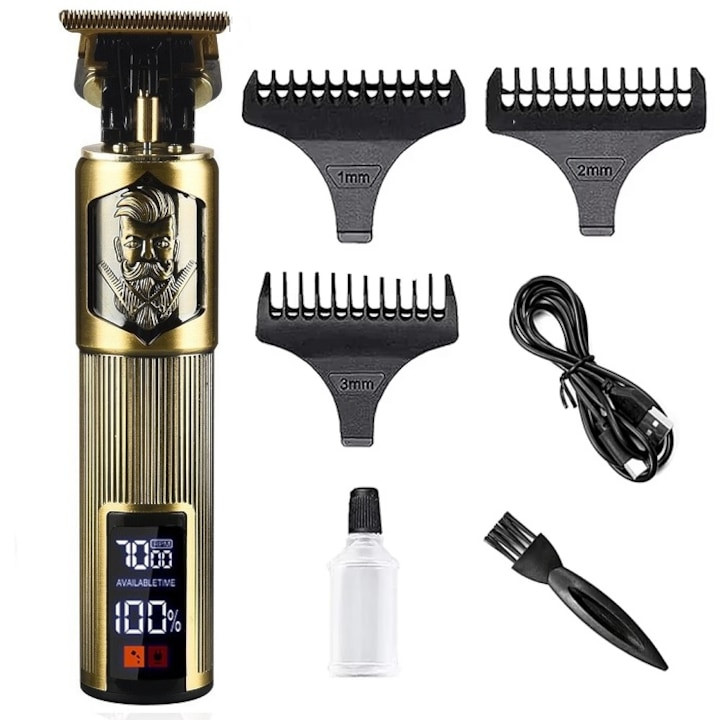 THOLux® professzionális szakáll- és kontúrvágó, borbélymodell, vezeték nélküli, alacsony zajszint, USB-töltés, rozsdamentes acél pengék, állítható fésűk, különféle stílusok/minden korosztály számára, arany
