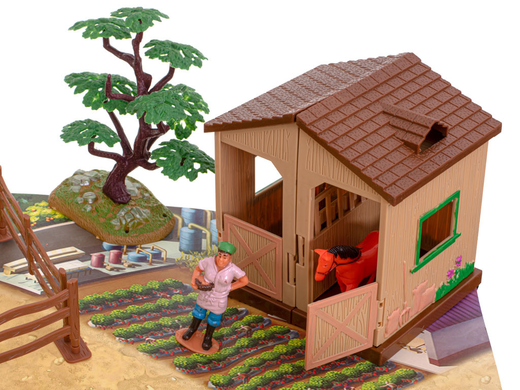 Ezzel a játékkal gyermeke jobban megértheti a vidéki élet valóságát. A készlet fejleszti a képzelőerőt és a kreatív gondolkodást. A tábla felépítése lehetővé teszi, hogy egy kis építő elképzelése szerint állítson fel gazdasági épületeket. Minden elemet a kis kezekhez igazítottak, így a gyermek könnyen "újjáépíti" az udvarát.