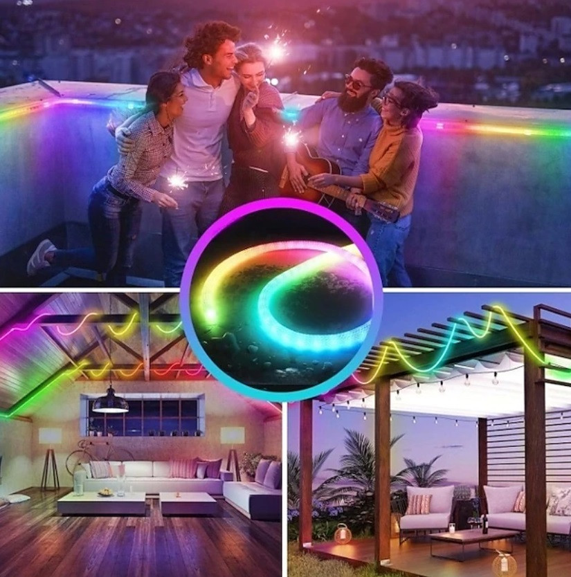 Dobd fel a hangulatot ezzel az egyedülálló USB-s RGBIC szilikon LED kötéllel, amely rugalmas, vízálló kialakításával és 360 fokos világításával tökéletes választás bármilyen dekorációhoz! A beépített WS2812B / WS2811 chipek lehetővé teszik az egyedi fényjátékokat és színátmeneteket, míg a mellékelt Bluetooth vezérlés és 24 gombos távirányító egyszerű és gyors irányítást biztosít.