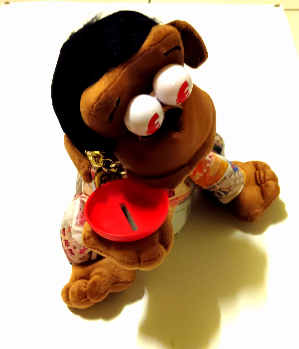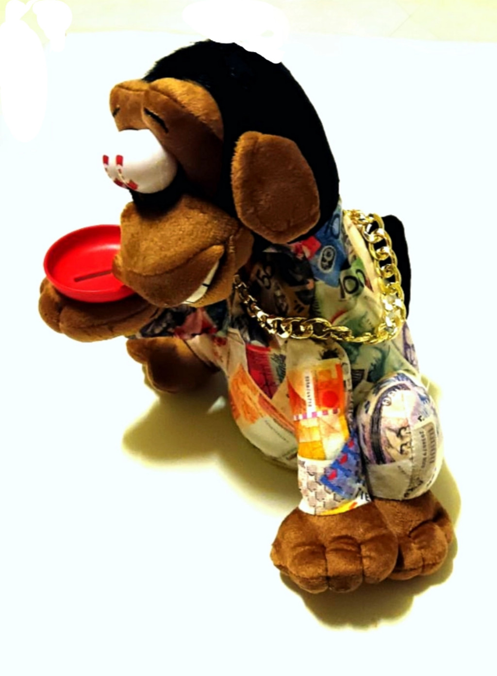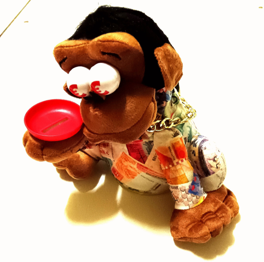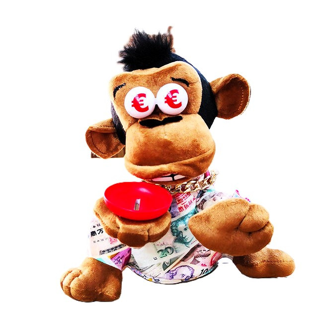 A Vicces Kolduló Majom egy igazán őrült játék, ami kinyújtott mancsával koldul a pénzedért, és várja, hogy bedobj egy érmét a tálcába. A játékot hátulról aktiválhatod három AA 1,5 V-os elemmel, és hagyd bekapcsolva a be/ki gombot, a majm semmi különöset nem csinál, amíg adunk neki egy érmét.