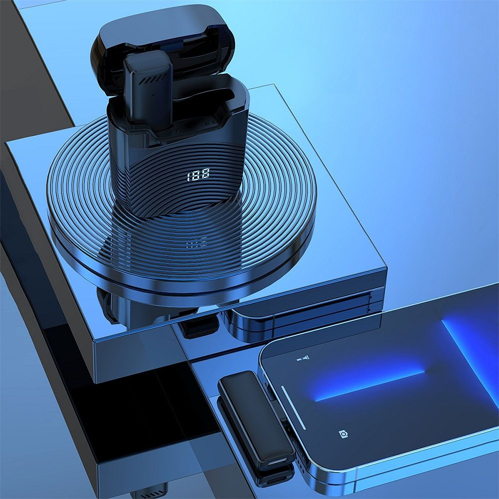 Az USB-C csatlakozóval ellátott vezeték nélküli mikrofon egy olyan eszköz, amely kültéren és beltéren egyaránt segít felvételek készítésében. A kompakt forma és a ruhákra való rögzíthetőség alkalmassá teszi vlogok készítésére, adások vagy interjúk készítésére. Tartalmazza a töltőtokot LED-kijelzővel.