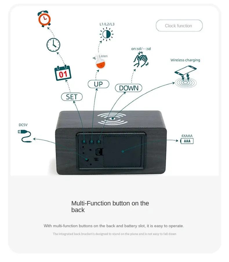 Ytaide Elegáns Fa LED Ébresztő óra Vezeték Nélküli Töltőpaddal Kettős Ébresztés