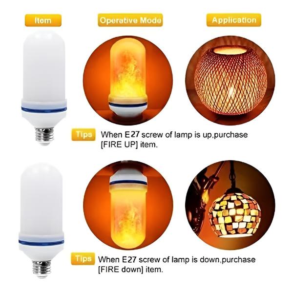 LED lámpa E27 lángeffektussal, 4 üzemmód, 61x138mm, 5W, meleg fény Láng Hatású Égő
