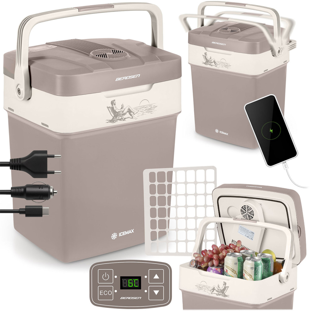Könnyű utazási hűtőszekrény ECO funkcióval Berdsen: 3827 A ház kettős falai kiváló hőszigetelést biztosítanak és fenntartják a hőmérsékletet a hűtőszekrényben. Űrtartalma 29 liter. Elektronikus kijelző. Lehetőség a hőmérséklet beállítására. Két üzemmód - ECO és Norml. Hűtő funkció – az italokat 18°C-kal a környezeti hőmérséklet alá hűti. A nap nem hagy nyugodni – de lehet! Hideg italok, friss gyümölcs és stresszmentes kikapcsolódás – vigye a hűtőt, ahová csak akarja. 2 db tápegység jár hozzá! USB bemenet a telefon töltéséhez! 12 V-os autós aljzat - használhatja a hűtőszekrényt autós utazás közben. 230 V-os hálózati aljzat a hűtőszekrény otthoni töltéséhez. A Berdsen hűtődoboz használatának előnyei Ennek a hűtőszekrénynek a tulajdonságai nagy hasznot hoznak Önnek. A hűtőszekrény számos funkciót képes ellátni: piknikkosár funkció - tegye be az ételt a hűtőbe és állítsa be a megfelelő hőmérsékletet a kijelzőn. szigetelő táska funkció - tökéletes termék a strandra. Most már elfelejtheti, hogy minden évben új szigetelőtáskát vásároljon, csak vigye magával a hűtőjét. A termékek hűtve lesznek, és Ön hosszú éveken át élvezheti őket. A hűtőszekrény tökéletes lesz egy rövid tengerparti kiránduláshoz vagy egy hosszú utazáshoz - 29 literes űrtartalmú. A nagy kapacitásnak köszönhetően mindent elfér, amire szüksége van magának és szeretteinek. HOSSZABB PIHENŐT TERVEZSZ? A BERDSEN HŰTŐGÉP TÖKÉLETESEN MŰKÖDIK A hűtőszekrény tápellátása és kezelése – egyszerű és kényelmes. A hűtőszekrény táplálható 220-240 V ~50/60 Hz-es hálózati aljzatról vagy 12 V-os autós szivargyújtó aljzatról - a megfelelő tápkábeleket a készlet tartalmazza. A motor beindítása után a hűtőszekrény automatikusan bekapcsol, de előfordulhat, hogy meg kell nyomnia az ON/OFF gombot az újraindításhoz. Az Eco mód a beállított hőmérséklet elérésekor aktiválódik, csökkentve az energiafogyasztást. Ha a hőmérséklet emelkedik, a készülék automatikusan visszakapcsol normál üzemmódba. Elektronikus vezérlőpanel Az elektronikus panel használata nagyon egyszerű. ON/OFF gomb ECO mód gomb Hőmérséklet-szabályozás - magasabb Hőmérséklet szabályozás - alacsonyabb Jelződiódák A beépített ventilátor biztosítja a levegő forgását a kamrában, aminek köszönhetően a termékek egyenletesen hűlnek. Kiváló minőségű részletek – minden részletben kifinomult! Hőszigetelt tartály és fedél. A beépített ventilátor forgatja a levegőt a kamrában, aminek köszönhetően a termékek egyenletesen hűlnek. Összecsukható fogantyú - fogantyú. Praktikus rekesz. Biztonságos szállítás a fedélzárnak köszönhetően. A hűtőszekrény praktikus zárrendszerrel rendelkezik - amikor a fogantyú függőlegesen áll (hordási helyzetben), a fedél zárva marad. Ezzel elkerülhető, hogy szállítás közben véletlenül kinyíljon. A hűtőszekrény további előnye a belsejét elválasztó rács. A hűtőszekrény rendkívül kemény és tartós PVC anyagból készült ráccsal rendelkezik. A rács megkönnyíti a termékek felosztását a hűtőszekrényben. Kényelmes nyitás a támasztó funkciónak köszönhetően. A hűtőszekrény fogantyúja praktikus támaszként használható - csak helyezze rá a fedelet, hogy megakadályozza az automatikus bezáródást a termékek becsomagolásakor vagy eltávolításakor. MŰSZAKI ADATOK: Űrtartalom: 29 liter Tápellátás és teljesítmény 220-240V / 55-60 W / ECO 8,6 W / DC 12 V 5 A 43-45 W 2 tápkábel mellékelve: 240 V és 12 V kábelhossz 12 V - 2 m Hangerő ECO módban: 26 dB Hangerő normál üzemmódban: 39 dB teljesítmény: 60W ± 10% Hűtés: akár 18°C-kal a környezeti hőmérséklet alatt Fűtés: 65°C-ig Külső méretek (fogantyúval együtt) 41 x 30 x 48,5 cm Belső mérete (a hűtőszekrény aljáról) 30 x 39 x 24 cm Súly: 5 kg Rendkívül halk – szinte néma.
