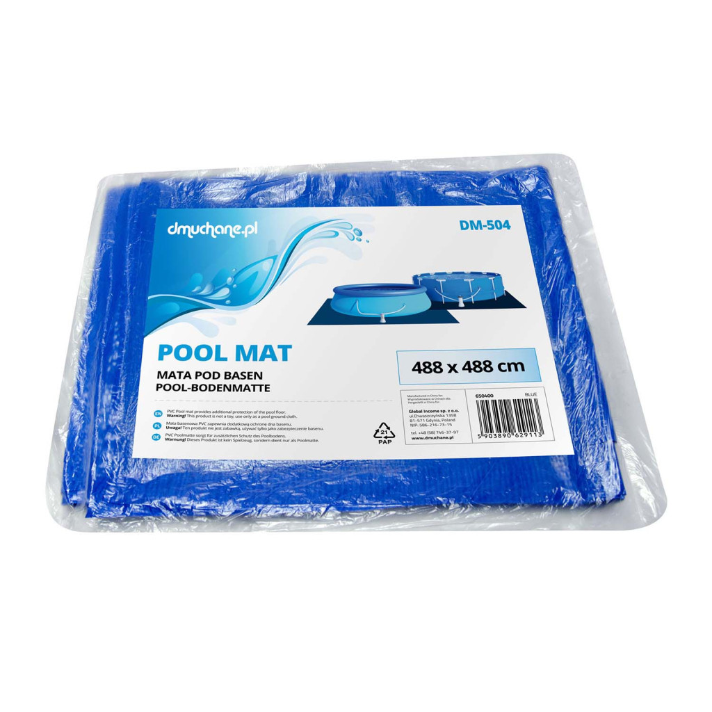 Univerzális medenceszőnyeg 488 x 488 cm DM-504 Modell: 650400 A medencefenék védelme - megakadályozza a kavicsok vagy egyenetlen padlófelületek által okozott horzsolásokat és sérüléseket. Hőszigetelés – korlátozza a talaj hőveszteségét, a víz hosszabb ideig kellemesen meleg marad. Nedvességállóság - A PE anyag nem szívja fel a vizet, nem penészedik és könnyen szárad. Újrafelhasználható - tartós és ellenáll a külső körülményeknek, sok évszakon át kitart. Könnyen tisztítható - csak öblítse le vízzel vagy törölje le nedves ruhával. Terítsen védőszőnyeget a medencéje alá, és élvezze sok évszakon át! A szőnyeg nélkülözhetetlen védelmet nyújt medencéje számára - ennek köszönhetően megóvja az alapját a sérülésektől és a kopástól. Megbízható módja annak, hogy elkerüljük a homok, fű és egyéb szennyező anyagok bejutását a vízbe. Az univerzális védőszőnyeg tágulási és keretes medencékhez egyaránt illeszkedik. Főbb jellemzők: univerzális szőnyeg bármilyen típusú medencéhez, megvédi a medencét a szennyeződéstől, segít megvédeni a medencét a lyukaktól. Műszaki adatok: szőnyeg méretei: 488 x 488 cm anyaga: PE Könnyen felszerelhető - a kívánt méretre vághatja vagy több darabot kombinálhat.