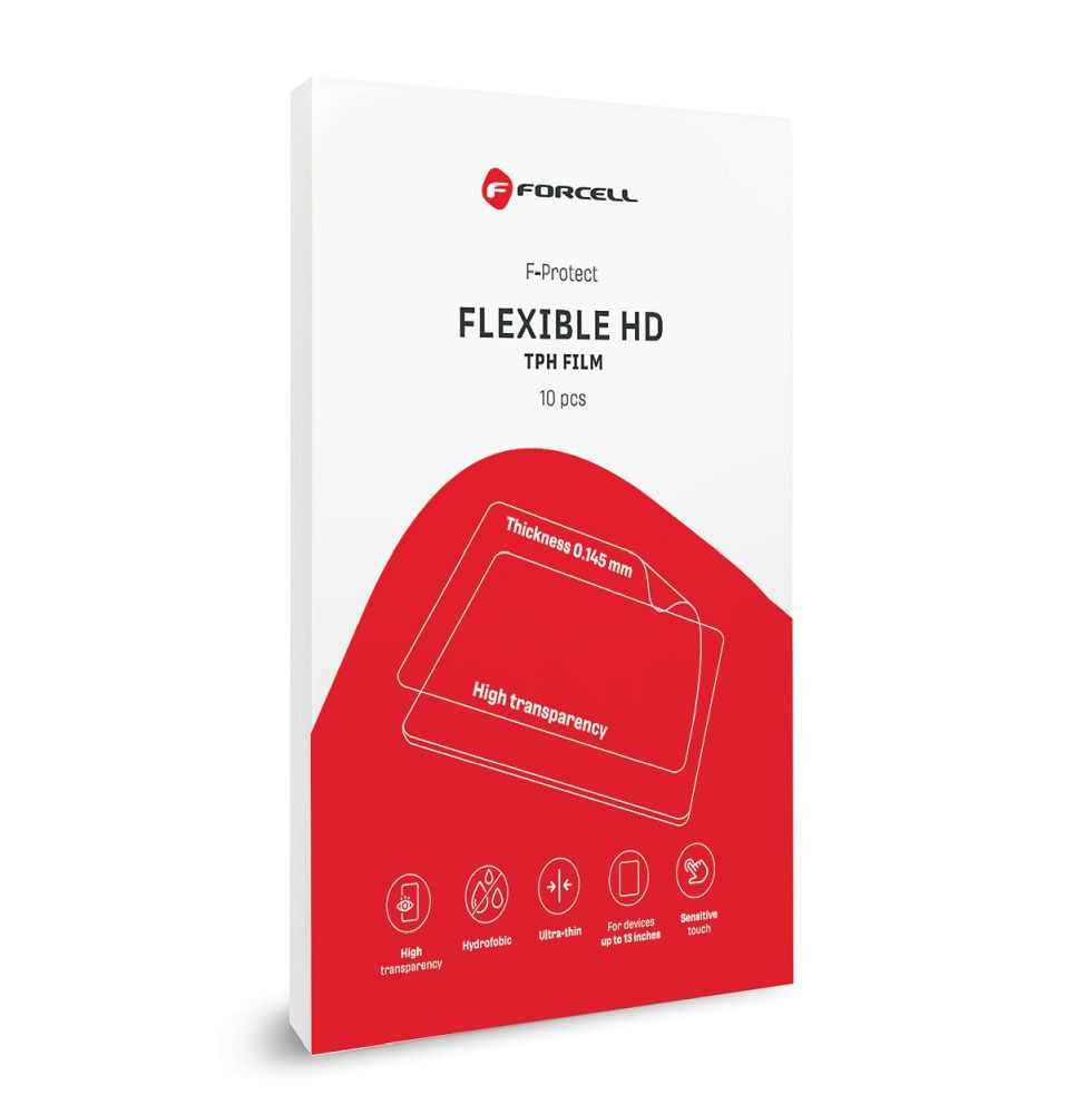 A Forcell Flexible HD egy ultravékony, nagy átlátszóságú képernyővédő fólia, amely hatékony, de szinte láthatatlan képernyővédelmet biztosít. Rugalmas anyagból készült, tökéletesen illeszkedik a különböző felülettípusokhoz. Legfeljebb 13 hüvelykes eszközökhöz használható, de támogatja a nedves alkalmazást is.